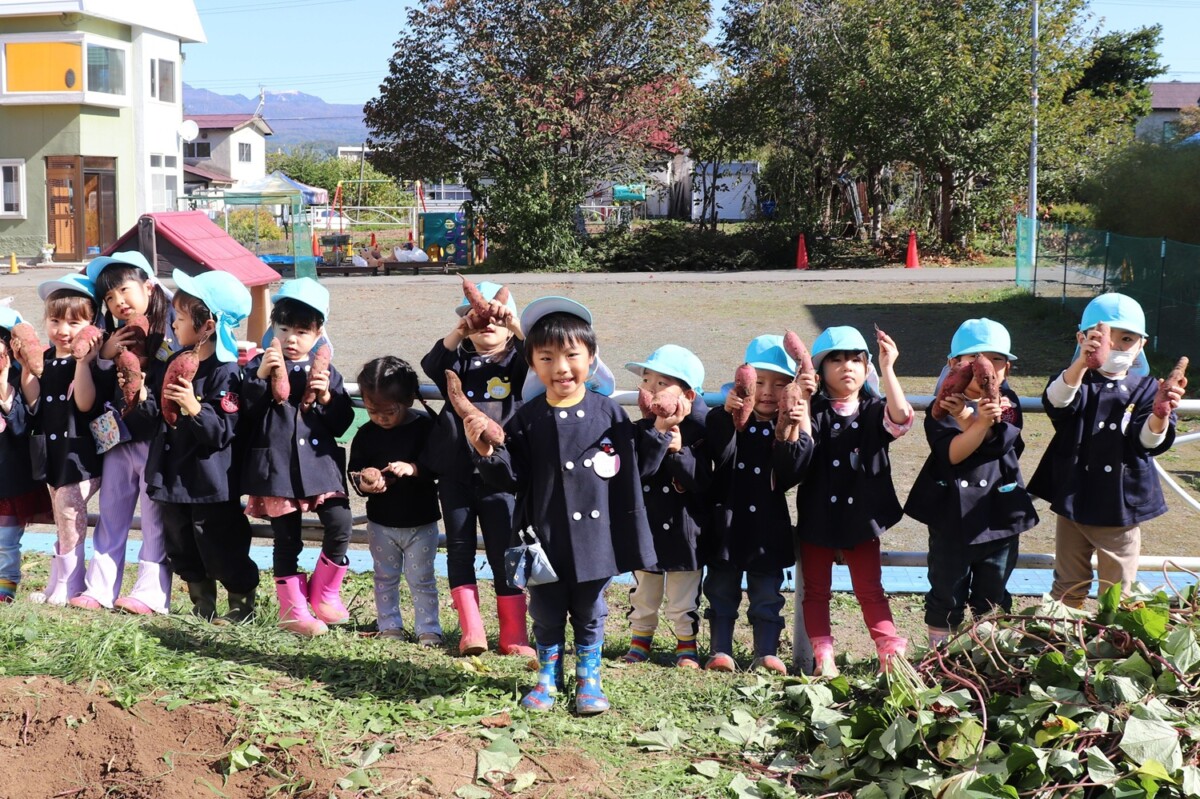 ひばり畑に植えた4株のさつまいも。子ども達がせっせと水をやり、太陽の恵みで大きな株になりました。