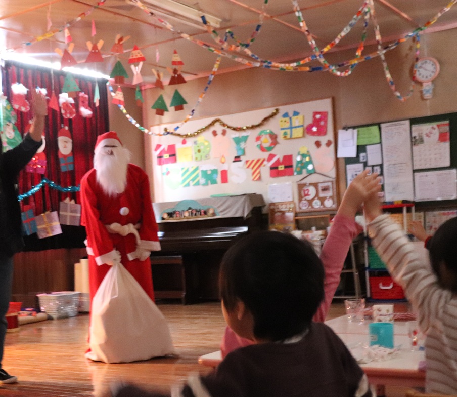ひばり幼稚園の子ども達のところにプレゼントを持ったサンタさんが来てくれました🎅