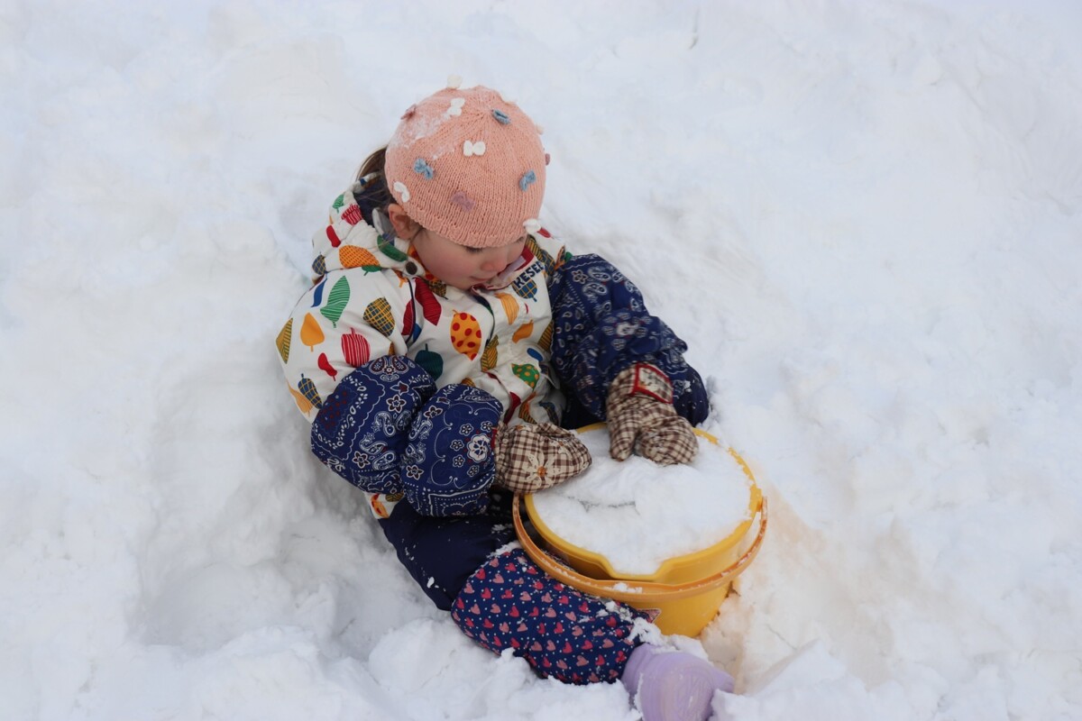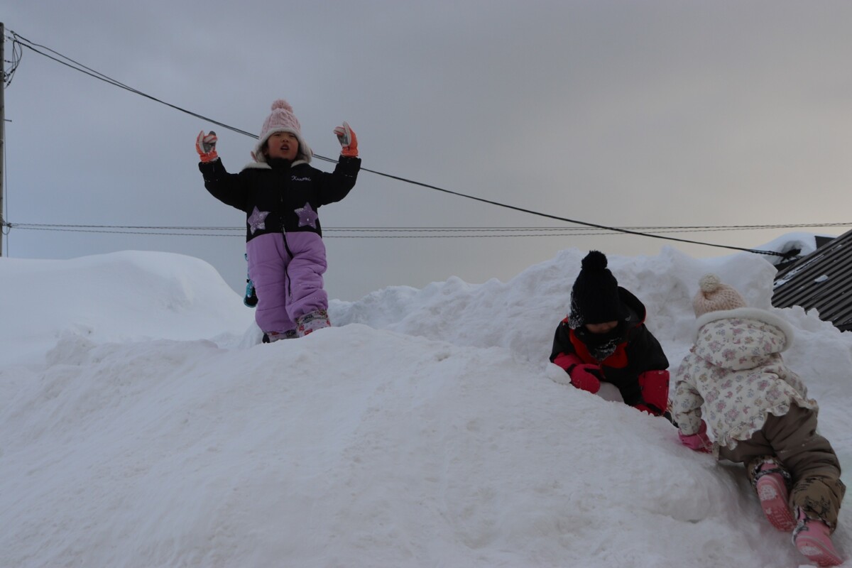 園庭には大きな雪山が!!今日は天気も良く、たくさん遊びましたよ⛄