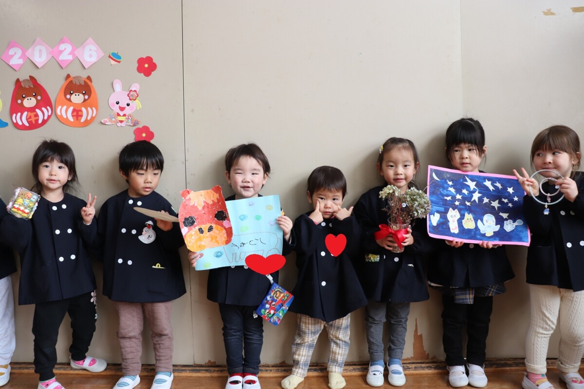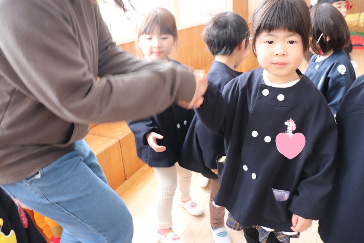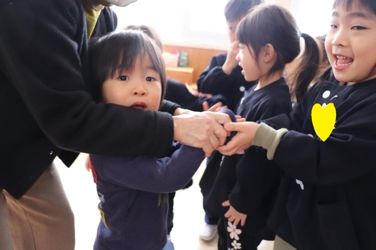お友達と先生達と3学期もよろしくね、たくさん遊ぼうねの握手をしました!