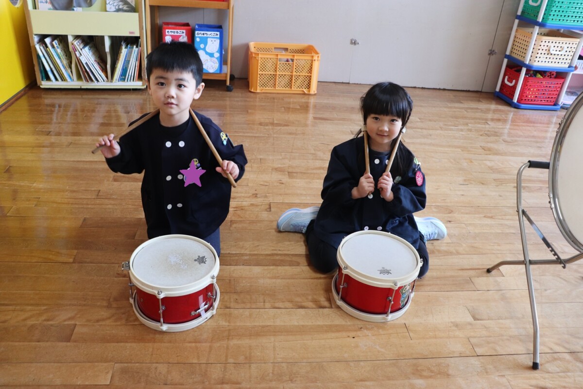 次は、小太鼓と中太鼓🥁音楽に合わせてやってみると、意外と出来ちゃった!!