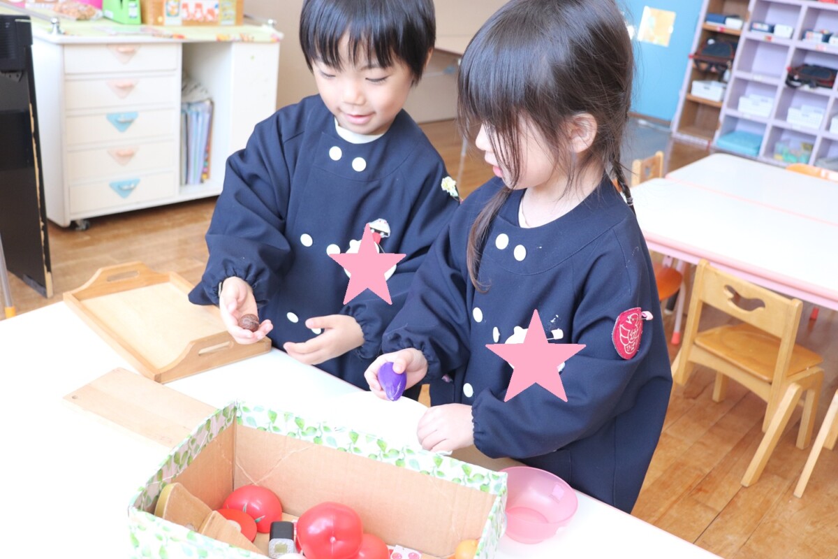 もも組、ゆり組のおままごと遊びの様子です!