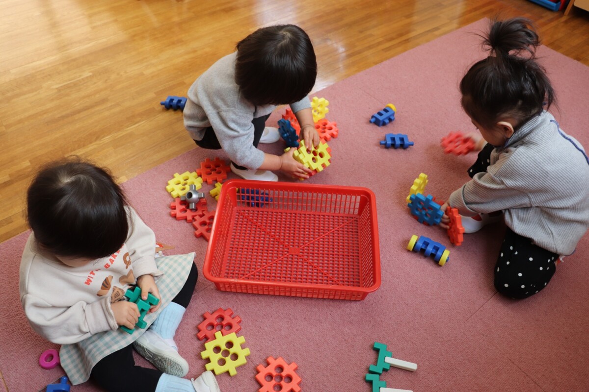 2026.02.27 園ブログ いっしょ いっしょ みんないっしょ 3人そろってブロック遊びをしています スカイジムにだって登れるよ! ブランコも楽しいな~♪ みんなで同じ遊びをするようになったひまわり組です。