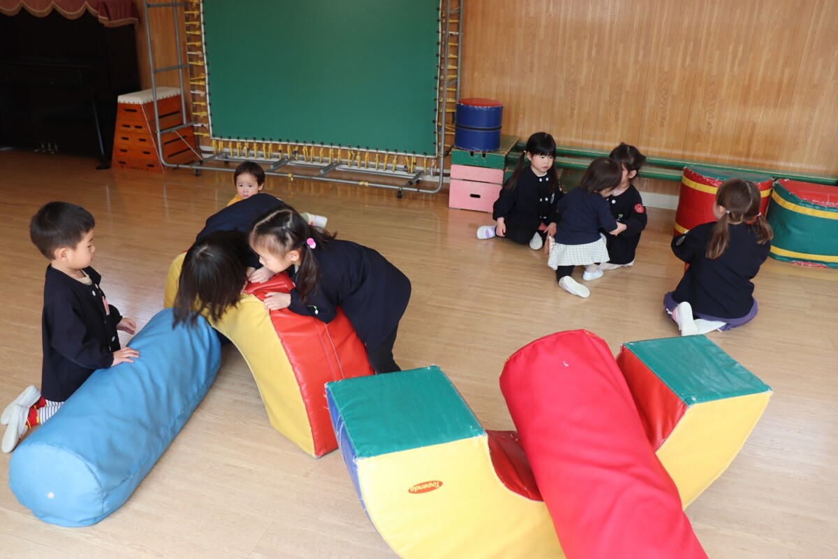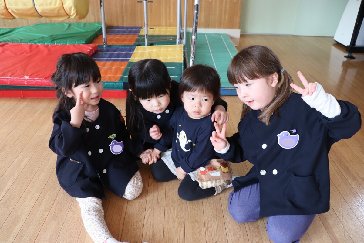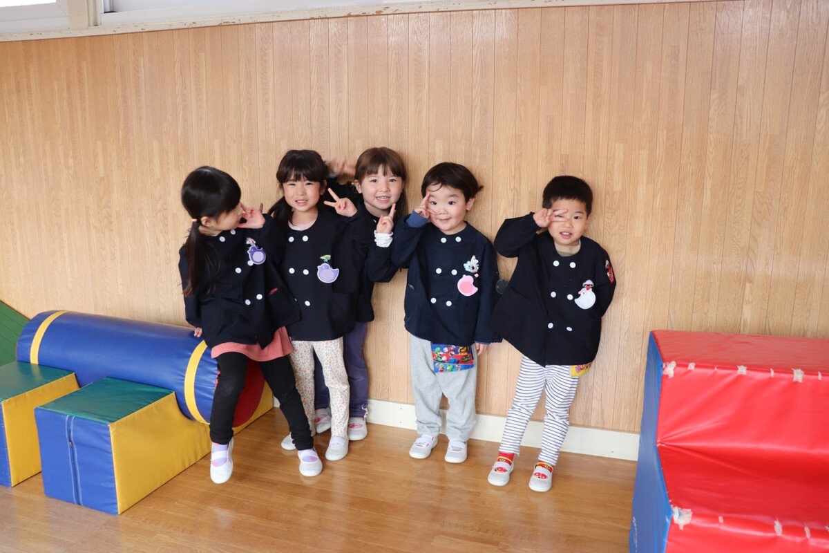 子ども:「並んで入場ごっこだよ。拍手してね!」 「次は○○ちゃんの入場です」