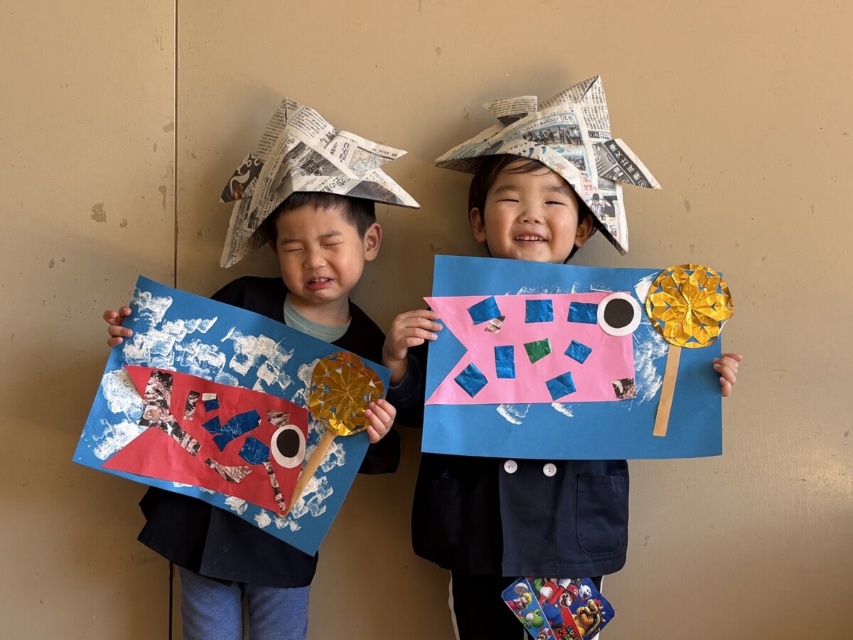 素敵なこいのぼりが出来ました🎏新聞紙で兜も作ったよ!!