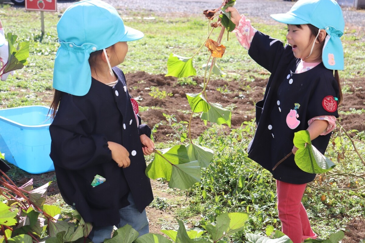 ひばり畑に植えた4株のさつまいも。子ども達がせっせと水をやり、太陽の恵みで大きな株になりました。